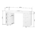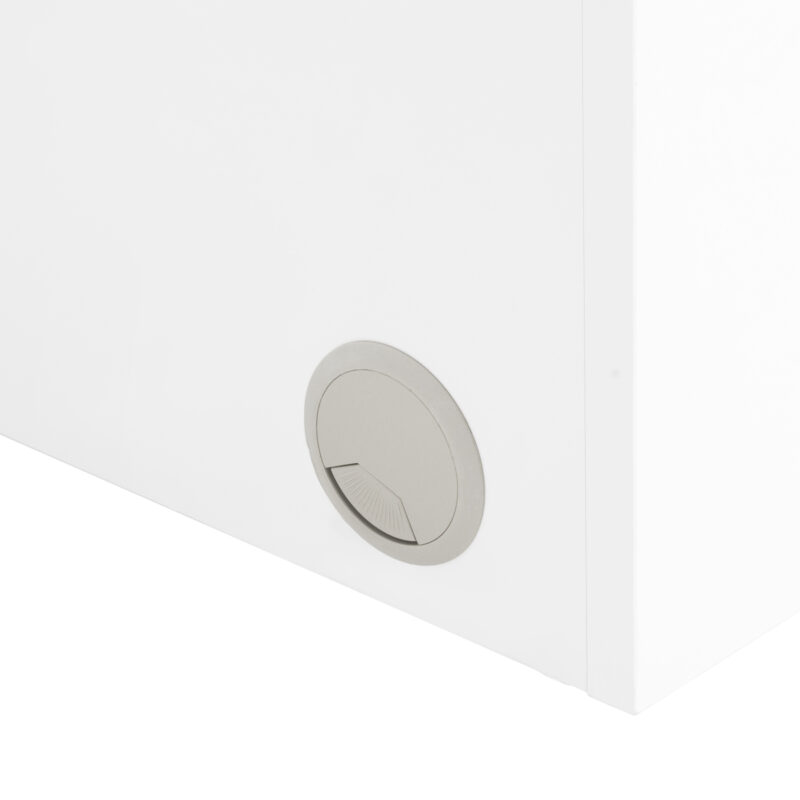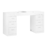 Szafki po obu stronach z trzema pojemnymi szufladami znacznie ułatwiają organizację oraz utrzymanie porządku w najpotrzebniejszych kosmetykach i narzędziach. Dzięki temu niezbędne produkty zawsze znajdują się pod ręką, co przekłada się na efektywność pracy. Biurko ma specjalne otwory w blacie do przeprowadzania kabli od niezbędnych urządzeń, co pozwala na łatwe utrzymanie porządku i estetyki stanowiska pracy.