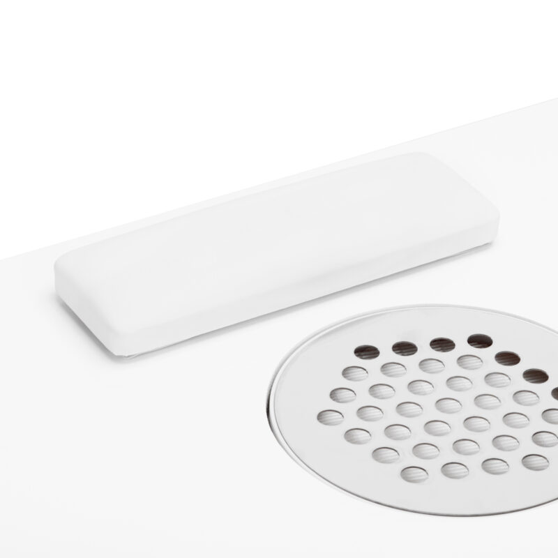 Innowacyjny kasetowy pochłaniacz pyłu wbudowany w blat znacząco poprawia komfort i higienę pracy, skutecznie usuwając pył powstały podczas zabiegów kosmetycznych, takich jak manicure. Dzięki temu urządzeniu powietrze w salonie pozostaje czyste, a miejsce pracy wolne od zanieczyszczeń, co zwiększa bezpieczeństwo zarówno dla kosmetyczki, jak i klientów. Pochłaniacz pyłu jest łatwy w obsłudze i konserwacji, co dodatkowo podnosi jego funkcjonalność. Istnieje możliwość dokupienia wymiennego filtra kasetowego do pochłaniacza (SKU 132085).