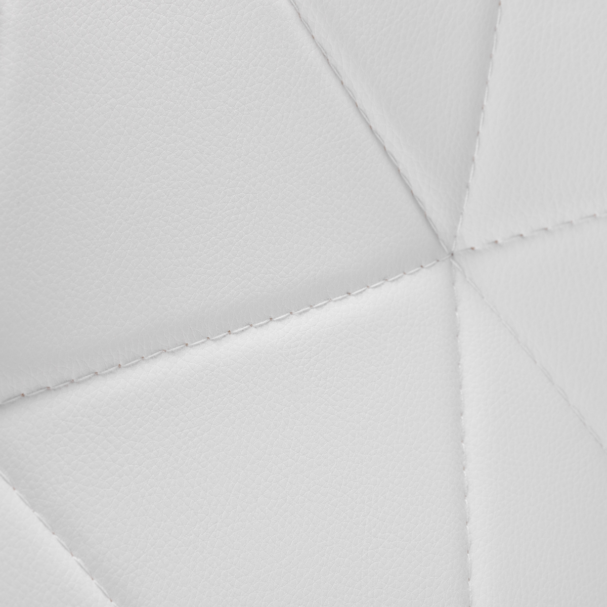 Pięcioramienna podstawa w odcieniach chromu wyposażona jest w gumowane kółka, które zapewniają znaczną mobilność, umożliwiając swobodne przemieszczanie mebla po gabinecie. Siedzisko taboretu zostało obite przyjemną w dotyku imitacją skóry w eleganckim odcieniu bieli. Zastosowany materiał gwarantuje trwałość, odporność na wilgoć oraz łatwość w utrzymaniu czystości. Całość dopełniają stylowe przeszycia, które podkreślają nowoczesny design.