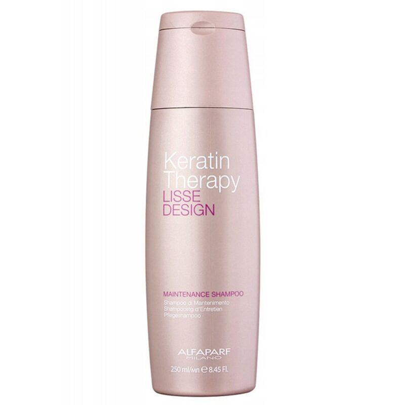 Szampon po keratynowym prostowaniu włosów Alfaparf Lisse Design Theraphy gwarantuje przedłużenie efektów zabiegu. Oprócz tego, że delikatnie oczyszcza skórę głowy i pukle, to zapewnia im jedwabistą gładkość i blask przeciwdziałając puszeniu. Zawiera wiele drogocennych składników jak keratyna, a także olejek babassu. Nie ma przy tym siarczanów i parabenów. Gwarantuje zdrowy wygląd i spektakularne efekty.
