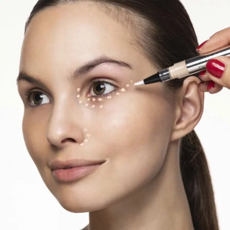 Aplikacja: Przed pierwszym użyciem przekręć końcówkę kilka razy, aż kolor będzie widoczny w szczoteczce. Dalsze zastosowania będą wymagały mniejszego skręcania. Nałóż na miejsca wymagające rozjaśnienia lub zakrycia (np. cienie pod oczami, bruzdy nosowo-wargowe lub kąciki ust i oczu) i rozetrzyj opuszkami palców. Produkt można nakładać bezpośrednio po pielęgnacji skóry lub na podkład.