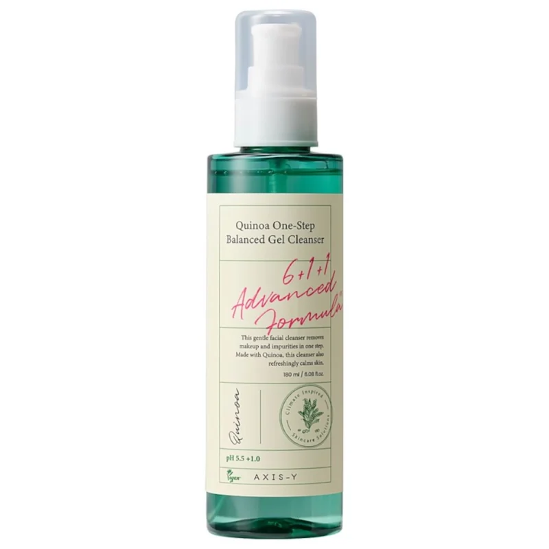 AXIS-Y Quinoa One-Step Balanced Gel Cleanser to delikatny, ale skuteczny żel do codziennego oczyszczania twarzy, odpowiedni dla wszystkich typów skóry, w tym wrażliwej. Skutecznie usuwa makijaż, zanieczyszczenia i nadmiar sebum, jednocześnie nawilżając i chroniąc naturalną barierę hydrolipidową skóry.