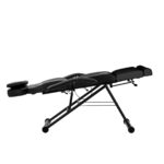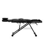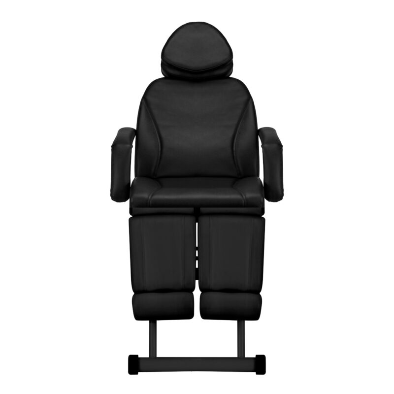Podstawa fotela posiada stałą wysokość, w związku z czym siedzisko znajduje się na niezmiennym poziomie, który powinien zapewnić komfort w trakcie użytkowania. Solidny metalowy stelaż w odcieniach czerni zapewnia niezbędną w trakcie użytkowania stabilność. Wysuwany o ok. 15 cm zagłówek stanowi doskonałe wsparcie głowy, niezależnie od wzrostu klienta. Pozwala to swobodnie wykonywać różnego rodzaju zabiegi między innymi z zakresu kosmetologii, fizjoterapii czy tatuażu.