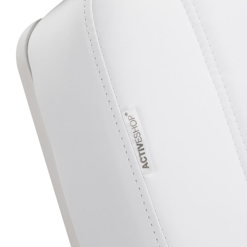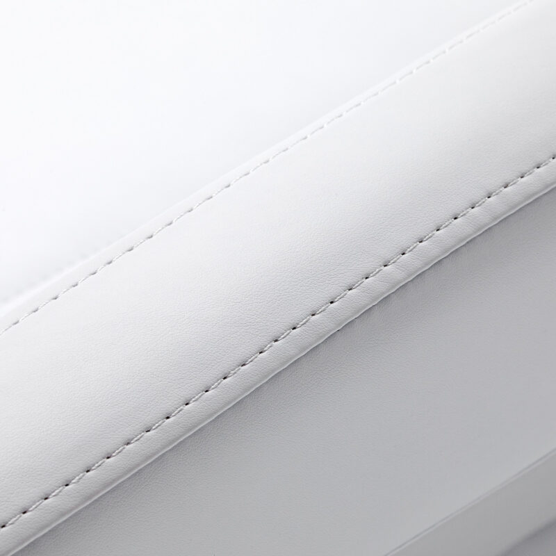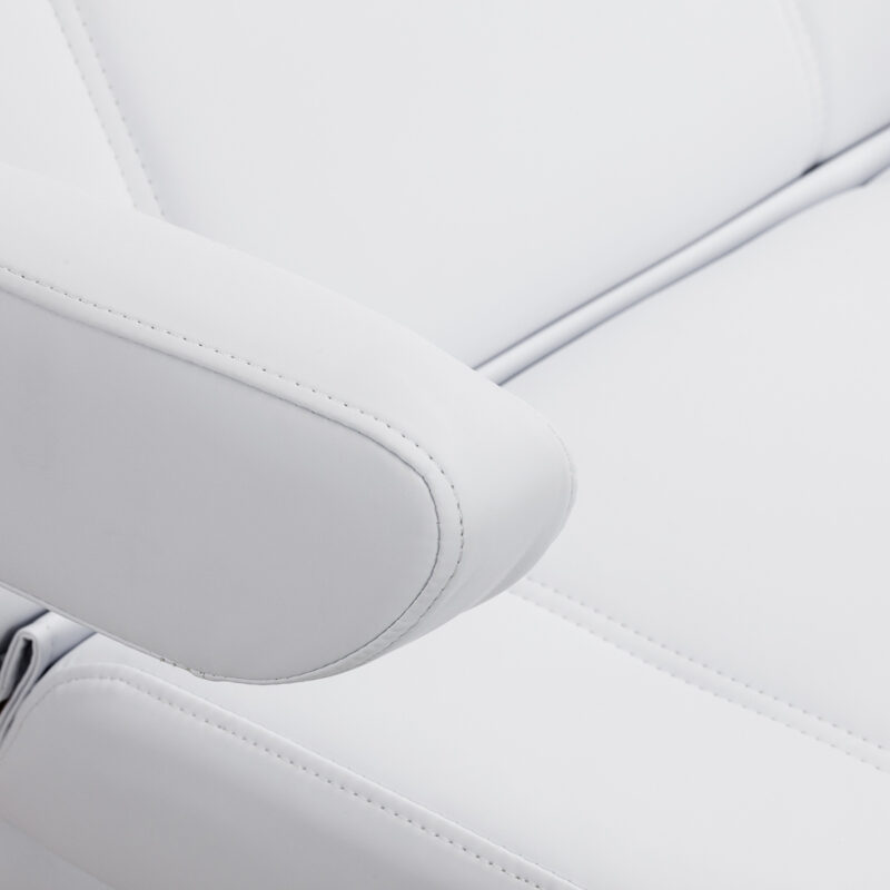Solidna konstrukcja zapewnia stabilność i wytrzymałość w codziennym użytkowaniu. Wypełnienie z pianki o dobranej twardości dba o komfort, a miękka w dotyku skóra syntetyczna w odcieniach bieli nadaje profesjonalny wygląd i jest odporna na wilgoć oraz łatwa w czyszczeniu. Precyzyjne wykończenia podkreślają nowoczesny charakter i ergonomię siedziska.
