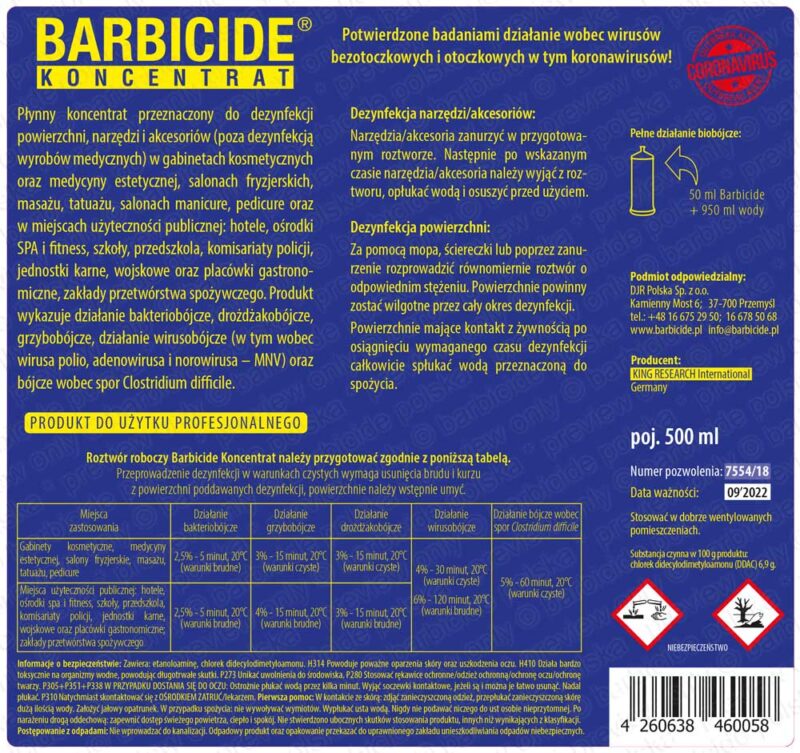 BARBICIDE KONCENTRAT DO DEZYNFEKCJI NARZĘDZI