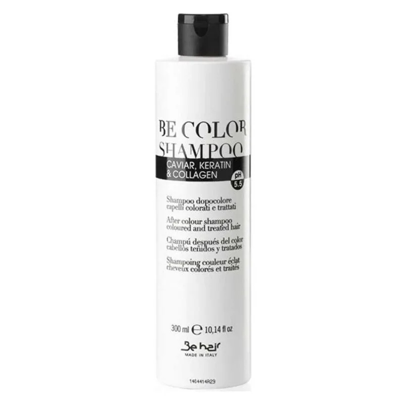 Szampon Be Hair Be Color, który w prawidłowy sposób odżywi włosy farbowane i po zabiegach chemicznych. Delikatna formuła kosmetyku doskonale oczyszcza, nawilża i chroni włosy zmęczone zabiegami. Dzięki pH 5.5 łuska włosa domyka się, dzięki czemu kolor jest doskonale chroniony a włosy stają się bardziej błyszczące. Szampon zawiera w swoim składzie 3 aktywne składniki odżywcze, którymi są kawior, kolagen i keratyna.