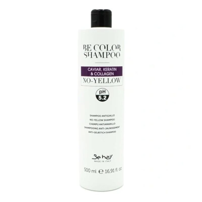 Szampon Be Hair Be Color No Yellow przeznaczony do włosów blond, rozjaśnianych lub siwych. Wysoka zawartość fioletowego barwnika idealnie pokrywa żółte odcienie na włosach, przez co nabierają one popielatego lub białego odcienia. Szampon zawiera 3 aktywne składniki odżywcze, którymi są kawior, kolagen i keratyna.
