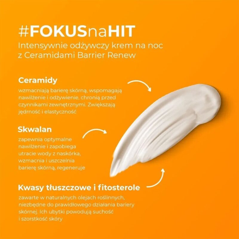 Odżywczy, bogaty krem, w którego formule pierwsze skrzypce grają składniki cementu międzykomórkowego – niezbędne dla prawidłowego funkcjonowania i odbudowy bariery skórnej. Krem zapewnia głęboką, nocną odnowę i regenerację. Cera staje się nawilżona, miękka, sprężysta, ukojona i bardziej odporna na działanie czynników zewnętrznych.