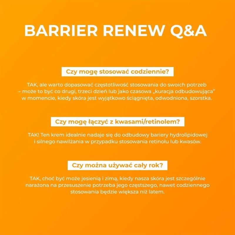 Barrier Renew to linia odżywcza, mocno regenerująca i nawilżająca, wspierająca odbudowę zdrowej bariery skórnej. Przeznaczona jest dla cer suchych, odwodnionych, delikatnych, cienkich, przesuszonych (m.in. czynnikami zewnętrznymi). Nadaje się także dla cer mieszanych dodatkowo odwodnionych np. agresywnymi terapiami przeciwtrądzikowymi. Jej głównym składnikiem aktywnym są Ceramidy.