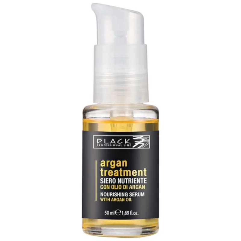 BLACK Serum nawilżające do włosów z olejkiem arganowym 50 ml to odżywcze serum do stosowania na mokre i suche włosy. Pomaga nawilżyć, wygładzić i zmiękczyć pasma, ułatwia stylizację oraz pozostawia włosy miękkie, lśniące i jedwabiste.