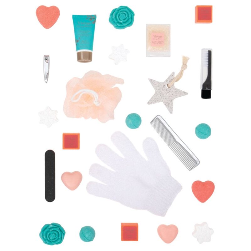 W zestawie znajdują się okienka, jak w klasycznym kalendarzu adwentowym. W ten sposób możliwe będzie dzień po dniu odkrywanie coraz to nowych zapachów. Sól do kąpieli, kule oraz mydełka otoczą skórę wyjątkową troską, zapewniając jej relaks i odpoczynek po ciężkim dniu, a wyjątkowo dobrane aromaty wpłyną kojąco również na cały organizm.