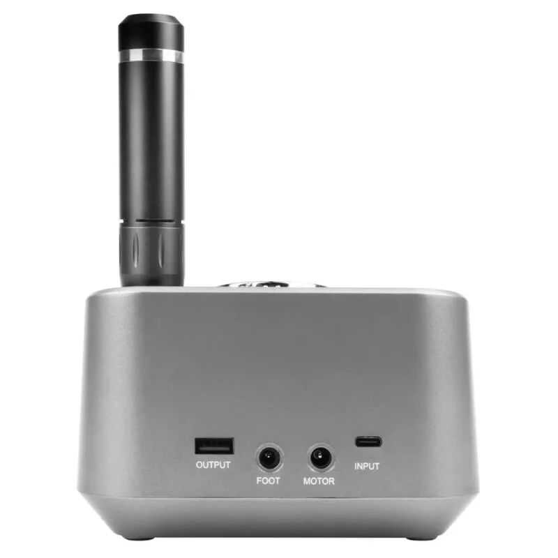 Profesjonalną frezarkę 80 W cechują niewielkie gabaryty przy idealnie wyważonym ciężarze, gwarantującym jej stabilność. Frezarka posiada inteligentny wyświetlacz z funkcją pamięci oraz funkcję pauzy- umożliwiającą zawieszenie pracy oraz kontynuowanie jej w dowolnym momencie z uprzednio ustawionymi obrotami. Urządzenie posiada wejście USB typu C oraz wejście USB-umożliwiające korzystanie z dwóch głowic frezarki jednocześnie lub ładowanie różnego rodzaju urządzeń elektronicznych, np. telefonu komórkowego.
