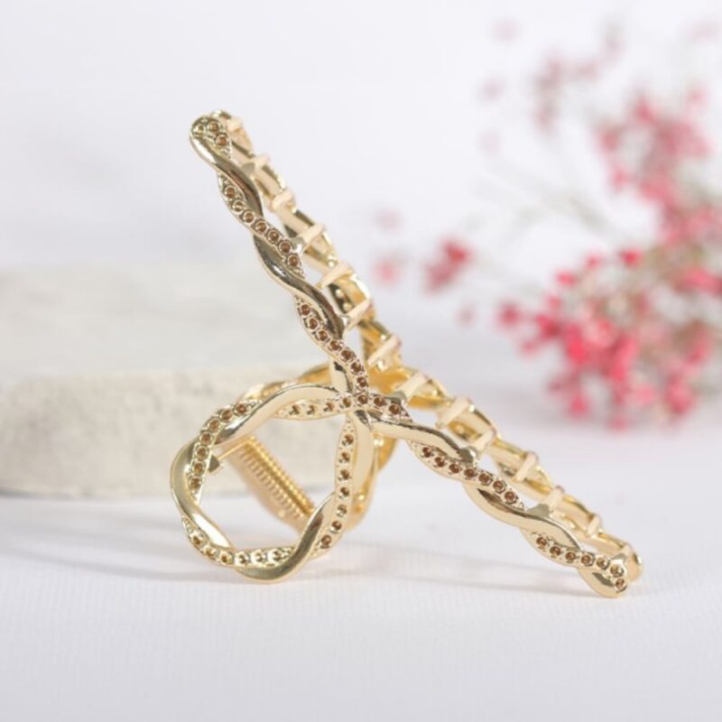 - Elegancki Blask: Złote zdobienia nadają klamrze luksusowego wyglądu, podkreślając piękno Twoich włosów i dodając im blasku.