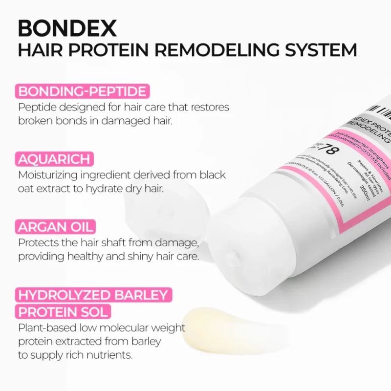 Dr. Melaxin Bondex Remodeling Clinic Treatment to profesjonalna odżywka odbudowująca do włosów suchych, zniszczonych i łamliwych. Zawiera Bonding Peptide-78, HAIRCLE, olej arganowy i pantenol, które razem przywracają włosom siłę, elastyczność, głębokie nawilżenie i intensywny blask.