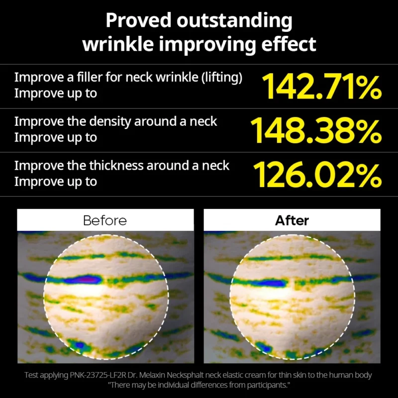 Dr.Melaxin Necksphalt ECM Neck Barrier Cream to zaawansowany krem-bariera do skóry szyi, zawierający 20 000 ppm ECM-5 i liposomalny kompleks peptydów, który ujędrnia, wzmacnia i wygładza skórę, redukując widoczność zmarszczek i poprawiając elastyczność o 142,71 %.