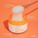 Odświeżający peeling do ciała DRYOPE Fruity Freesia – 46% naturalnego cukru, masło shea i pestki moreli. Wygładza, nawilża i odświeża skórę, pozostawiając ją pachnącą i jedwabiście miękką.