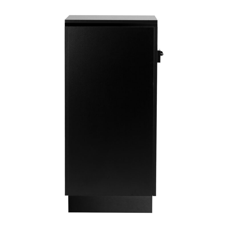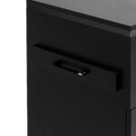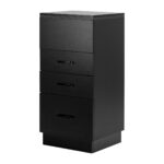 Klasyczna czerń nadaje pomocnikowi nowoczesnego, prestiżowego charakteru, który świetnie dopasuje się zarówno do minimalistycznych, jak i bardziej wyrazistych aranżacji. Solidna konstrukcja zapewnia stabilność, a gładka powierzchnia ułatwia utrzymanie mebla w czystości. Czarne uchwyty nie tylko podkreślają elegancki design, ale także zapewniają wygodne otwieranie każdej z szuflad. To praktyczne rozwiązanie do salonu fryzjerskiego, w którym liczy się porządek, wygodny dostęp do narzędzi oraz estetyka stanowiska pracy.