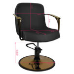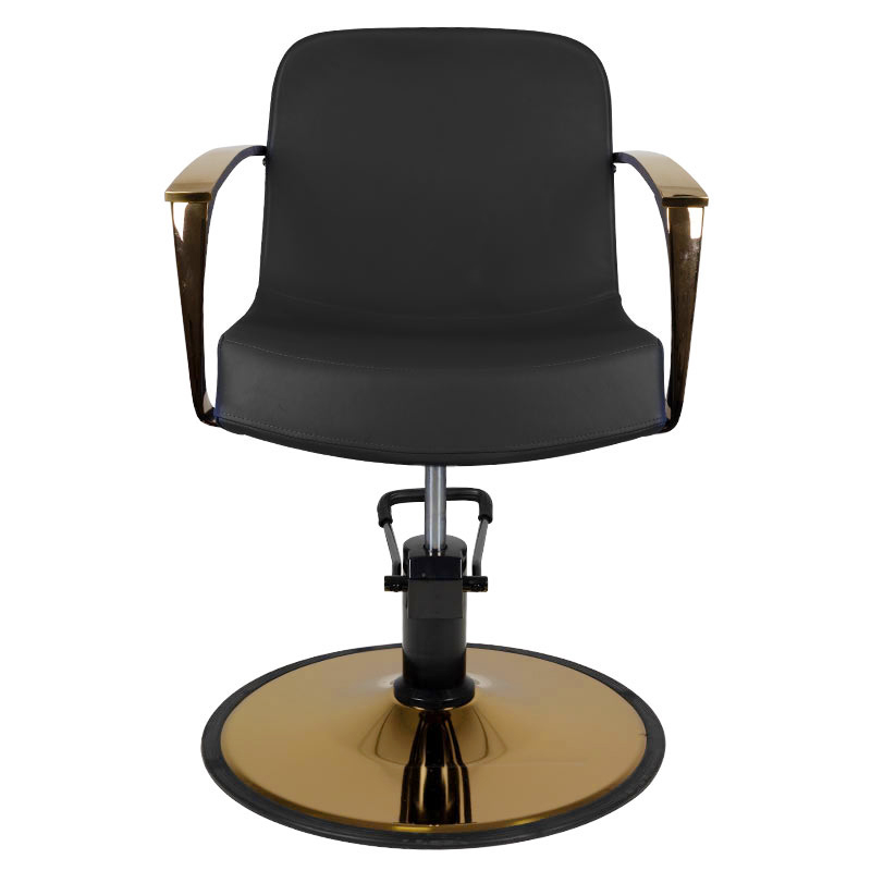 Nowoczesny fotel fryzjerski o wyjątkowym designie i niezwykłej jakośći. Metalowe elementy błyszczą kolorem złota wzmagając poczucie luksusu. Bardzo wygodny, idealnie pasujący do nowoczesnych salonów. Specjalnie wyprofilowany, by zapewnic klientowi wygodną pozycję podczas zabiegu. Regulowany w płaszczyźnie pionowej. Bardzo stabilny i solidny. Obicie z wysokiej jakości ekoskóry.