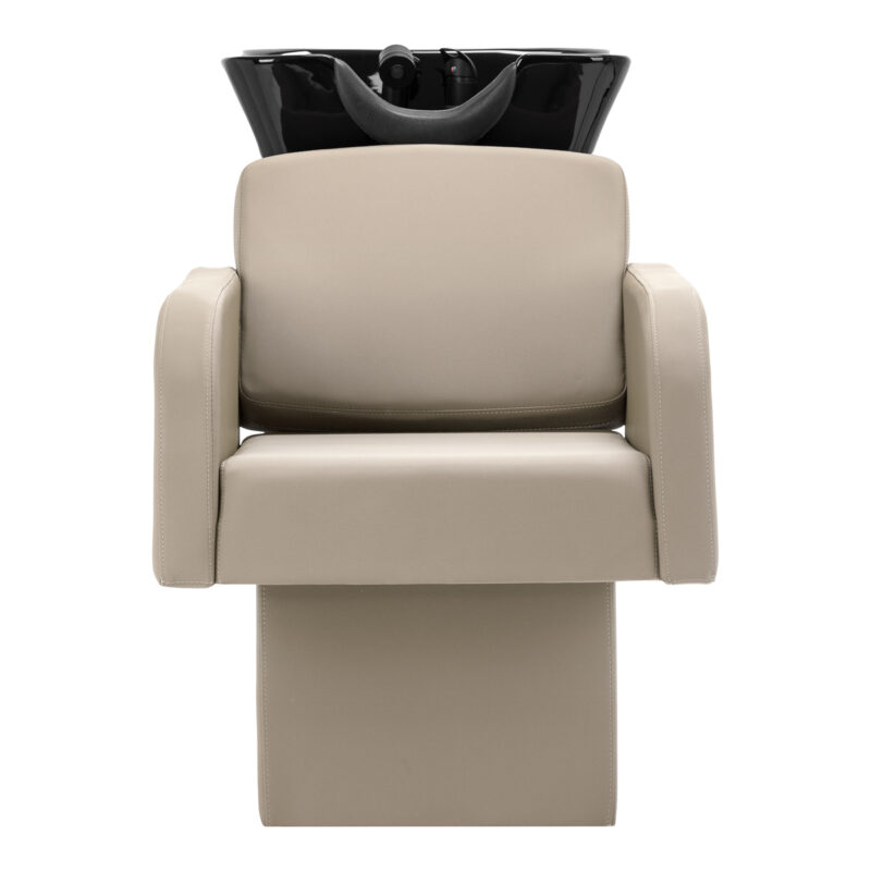 Myjnia fryzjerska Gabbiano Elda to połączenie komfortu, estetyki i funkcjonalności, które doskonale wpisuje się w potrzeby nowoczesnych salonów fryzjerskich. Odpowiednio wyprofilowany fotel, wypełniony trwałą i elastyczną pianką, gwarantuje stabilne podparcie odcinka lędźwiowego oraz wysoki komfort nawet podczas dłuższych zabiegów. Podłokietniki umożliwiają prawidłowe ułożenie barków, sprzyjając relaksowi klienta. Tapicerka wykonana z przyjemnej w dotyku skóry syntetycznej w eleganckim odcieniu szarości i beżu cechuje się dużą odpornością na zużycie, łatwością czyszczenia oraz estetycznym wykończeniem, które podkreśla profesjonalny charakter mebla. W zestawie znajduje się kompletna armatura w odcieniach czerni, w tym bateria, słuchawka prysznicowa oraz dedykowane węże, aby zapewnić całkowity zestaw narzędzi do pracy.