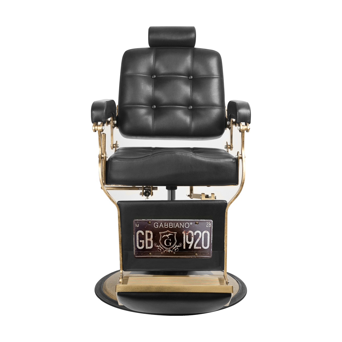 Fotel barberski w stylu retro zachwyca eleganckim designem inspirowanym klasyką motoryzacji. Solidna, okrągła podstawa zapewnia stabilność oraz komfort użytkowania. Siedzisko wypełnione trwałą, odporną na odkształcenia pianką oraz obite przyjemną w dotyku skórą syntetyczną gwarantuje wygodę i wytrzymałość na lata. Zastosowane materiały sprawiają również, że sprzęt jest odporny na wilgoć oraz łatwy do czyszczenia. Pikowana tapicerka w odcieniu czerni, wykonana z dbałością o detale, podkreśla luksusowy charakter mebla. Stylizowane metalowe podłokietniki i rama w odcieniu złota nadają całości wyjątkowego charakteru.