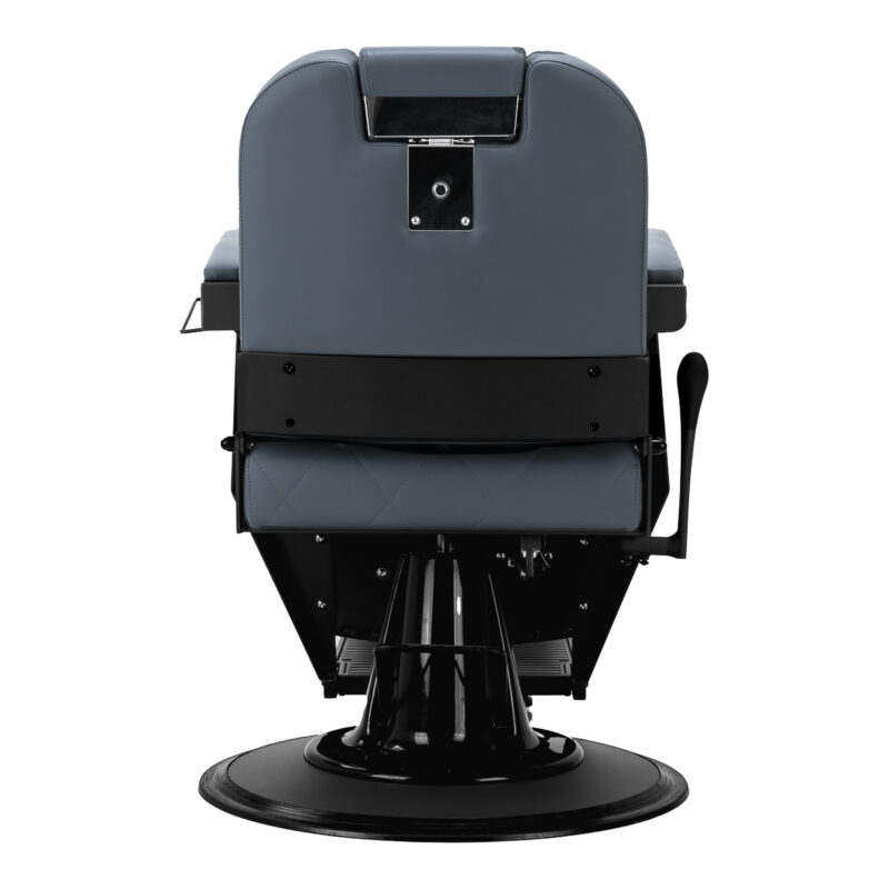 Stabilna konstrukcja zapewnia bezpieczeństwo i długą żywotność mebla. Siedzisko wypełnione pianką odporną na odkształcenia oraz obicie z miękkiej, matowej skóry syntetycznej zapewniają meblowi trwałość i wygodę. Odporne na wilgoć materiały są nie tylko wytrzymałe, ale również łatwe w czyszczeniu. Grafitowa tapicerka w połączeniu z czarną ramą nadaje fotelowi nowoczesny i profesjonalny wygląd, a minimalistyczny styl pozwala mu wpasować się w wystrój każdego salonu barberskiego.