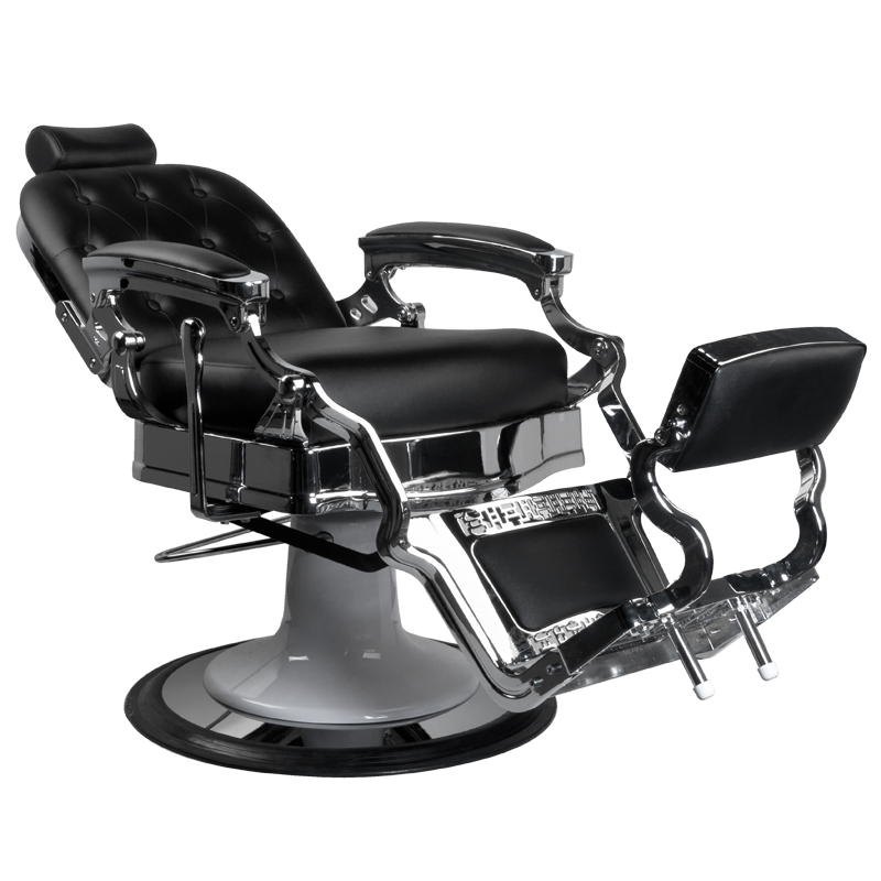 Solidna konstrukcja podstawy zapewnia stabilność oraz wysoki komfort użytkowania. Siedzisko wypełnione trwałą, odporną na odkształcenia pianką oraz obite przyjemną w dotyku skórą syntetyczną odporną na ścieranie i łatwą w pielęgnacji zapewnia trwałość mebla oraz wygodę na najwyższym poziomie. Zastosowane materiały sprawiają, że fotel jest odporny na wilgoć, wytrzymały i łatwy do czyszczenia. Stylowe obicie w odcieniach czerni, ozdobne pikowanie z guzikami na oparciu oraz elegancki podnóżek nadają fotelowi wyjątkowego charakteru. Jego design, inspirowany stylem vintage, doskonale wpisuje się w klimat klasycznych salonów barberskich, podkreślając ich niepowtarzalną atmosferę. Dopracowane detale, oryginalna tekstura tapicerki i masywna podstawa zapewniają nie tylko estetykę, ale także maksymalną stabilność. To połączenie elegancji i funkcjonalności, które spełni oczekiwania nawet najbardziej wymagających profesjonalistów.