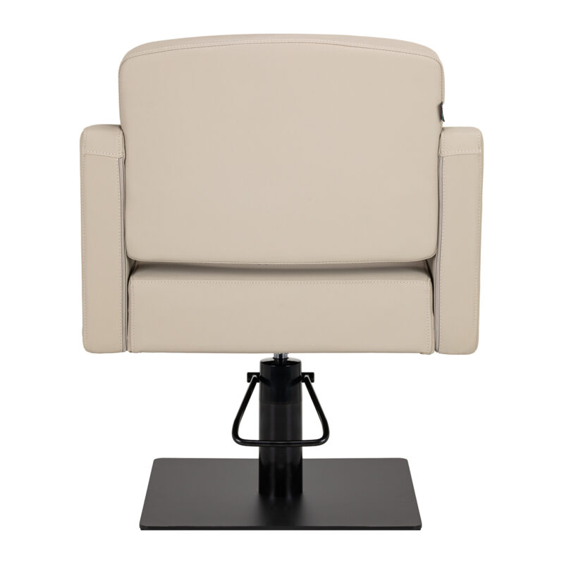 Minimalistyczny fotel fryzjerski z podnośnikiem hydraulicznym