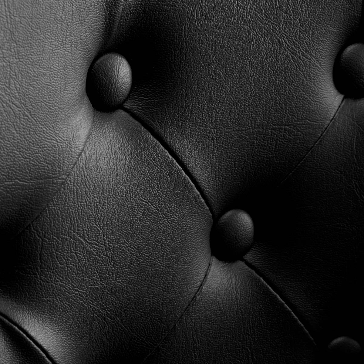 Fotel wypełniony jest pianką, która jest trwała i nie odkształca się, zapewniając komfortowe użytkowanie przez długi czas. Obicie wykonane jest z przyjemnej w dotyku imitacji skóry o specyficznej strukturze. Dzięki użyciu takiego materiału, sprzęt jest odporny na wilgoć, wytrzymały i łatwy w czyszczeniu. Pokrycie w odcieniach czerni oraz ozdobne powierzchnie metalowe lakierowane w barwach złota nadają mu wyraz ponadczasowej elegancji. Wyróżnia go gustowne wykończenie, które nadaje mu ekskluzywny charakter i sprawia, że będzie doskonale prezentować się w wielu profesjonalnych salonach.