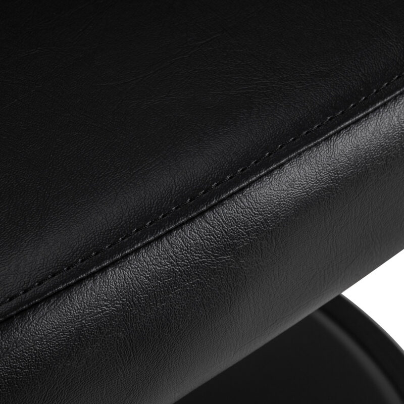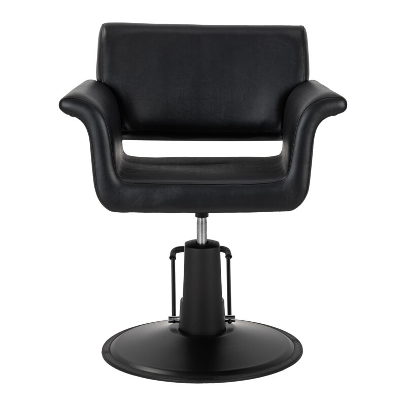 Fotel fryzjerski Gabbiano Lucca łączy nowoczesną prostotę z wygodą codziennego użytkowania. Okrągła, czarna podstawa gwarantuje stabilność, a tapicerka ze skóry syntetycznej w odcieniu czerni zapewnia komfort podczas zabiegów. Trwałe, odporne na wilgoć materiały sprawiają, że model ten jest nie tylko komfortowy, ale i wyjątkowo łatwy w pielęgnacji, dzięki czemu zachowuje estetyczny wygląd na lata. Charakterystycznie wygięte na zewnątrz podłokietniki nadają fotelowi elegancki wygląd, a jednocześnie wspierają wygodną pozycję klienta. To uniwersalny model, który doskonale wpisze się zarówno w nowoczesne, jak i bardziej klasyczne aranżacje, podkreślając profesjonalny styl salonu.