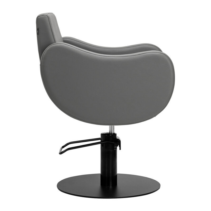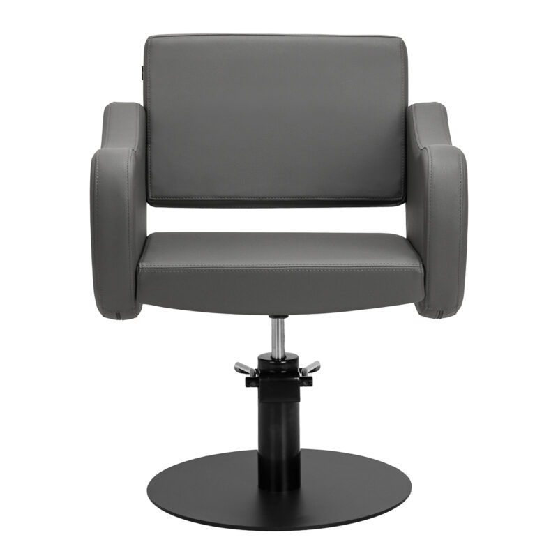 Fotel fryzjerski Gabbiano Sewilla łączy minimalistyczny design z wygodą codziennego użytkowania. Stabilna, okrągła podstawa w matowej czerni nadaje mu elegancki wygląd, a wypełnienie z pianki oraz przyjemna w dotyku skóra syntetyczna w odcieniach szarości z matowym wykończeniem zapewniają wysoki komfort. Zastosowane materiały są trwałe, odporne na wilgoć oraz łatwe do utrzymania w czystości. Doskonale sprawdzi się zarówno w nowoczesnych, jak i klasycznych aranżacjach, podkreślając profesjonalny styl wnętrza.