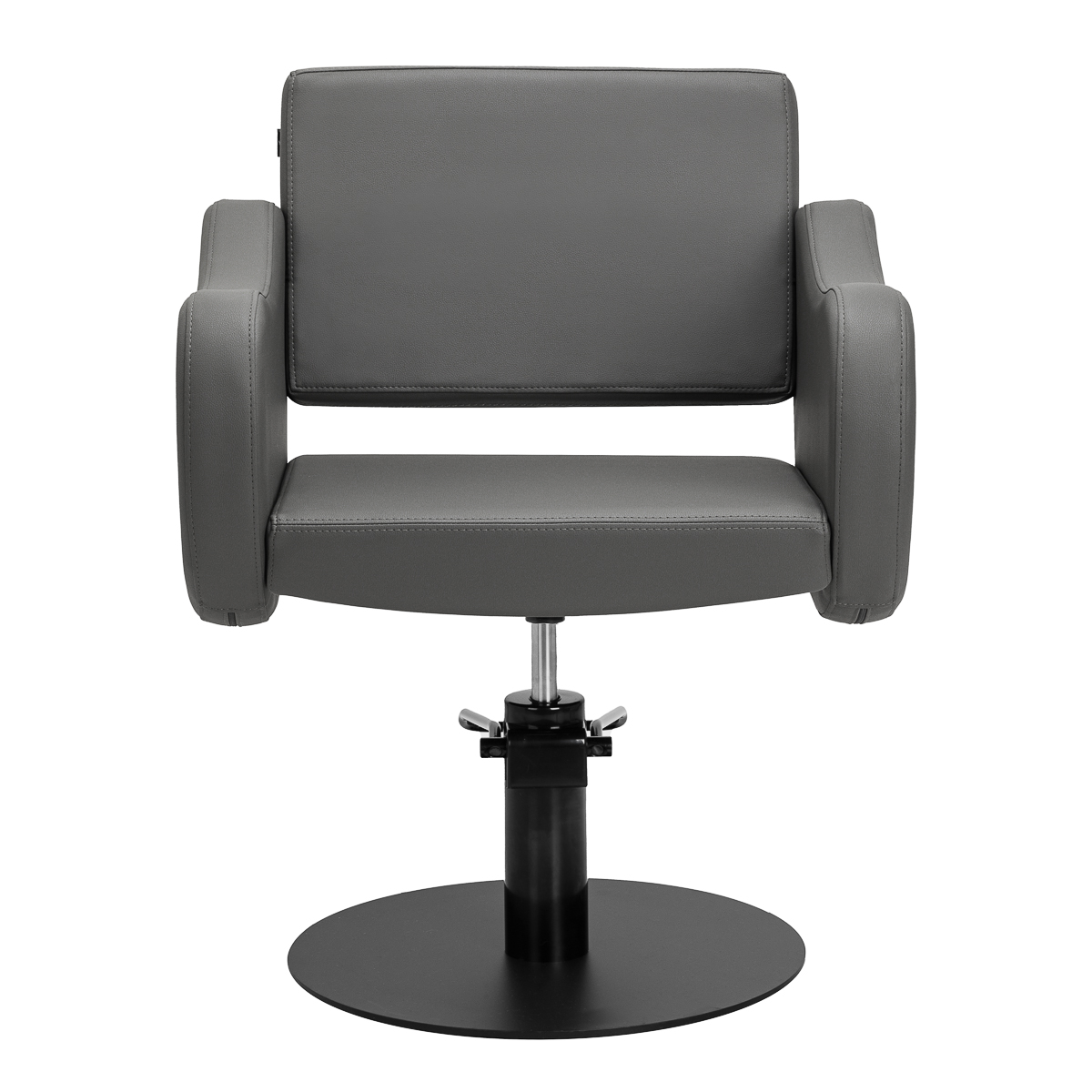 Siedzisko zostało zaprojektowane z myślą o komforcie nawet podczas długotrwałych zabiegów. Podłokietniki, umieszczone na ergonomicznej wysokości, wspierają prawidłową postawę klienta, co ułatwia precyzyjne strzyżenie i stylizację. Praktycznym atutem fotela jest otwór pomiędzy oparciem a siedziskiem – ułatwia on utrzymanie czystości, pozwalając szybko i skutecznie usunąć włosy z trudno dostępnych miejsc. Dzięki temu przygotowanie stanowiska na kolejnego klienta przebiega sprawnie i higienicznie.