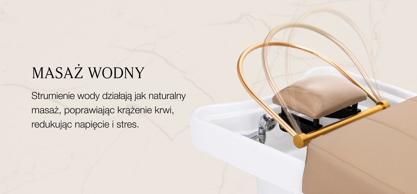 Złoty łuk z regulowanym kątem nachylenia, przeznaczony do Waterfall Head SPA, to innowacyjne rozwiązanie, które umożliwia kompleksową pielęgnację skóry głowy. Strumienie wody działają jak naturalny masaż, poprawiając krążenie krwi, redukując napięcie i stres. Precyzyjnie kontrolowany przepływy wody wspomaga regenerację włosów i intensywnie nawilża skórę. Wodospad z możliwością regulacji kąta zapewnia dogłębne oczyszczenie skóry głowy oraz odprężenie, przynosząc ulgę w dolegliwościach takich jak bóle głowy czy sztywność karku. Dzięki inteligentnemu systemowi zamkniętego obiegu, łuk pobiera wodę z misy i ponownie ją wykorzystuje, zapewniając nieprzerwany masaż wodny. To połączenie technologii i relaksu, które wspiera zdrowie włosów i dobre samopoczucie.