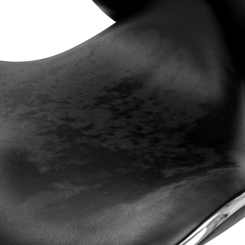 Pięcioramienna podstawa zapewnia stabilność, nawet podczas bardziej dynamicznych ruchów czy częstych zmian pozycji. Wyposażenie w wytrzymałe koła zapewnia wysoką mobilność, co pozwala na swobodne przemieszczanie się po salonie czy gabinecie. Obicie ze skóry syntetycznej w odcieniach czerni, które jest nie tylko trwałe, ale także łatwe do utrzymania w czystości. Estetyczne elementy w odcieniach chromu dodają luksusowego charakteru i przyciągają wzrok. Wyjątkowe połączenie elegancji oraz komfortu czyni taboret niezastąpionym narzędziem w pracy każdego profesjonalisty.