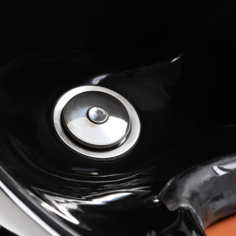 Myjnia wyposażona jest w baterię z mieszaczem, zapewniającą stały dostęp do ciepłej i zimnej wody oraz możliwość łatwego dopasowania temperatury do potrzeb klienta. Praktyczne miejsce na słuchawkę natryskową ułatwia organizację stanowiska, a korek ze specjalnym sitkiem pozwala kontrolować przepływ wody i utrzymywać wysoki poziom higieny. Przyłącze wody zostało umieszczone wewnątrz podstawy, co pozwala estetycznie ukryć instalację. Połączenie funkcjonalnych rozwiązań z ergonomicznymi detalami sprawia, że codzienna praca przebiega sprawnie i wygodnie.