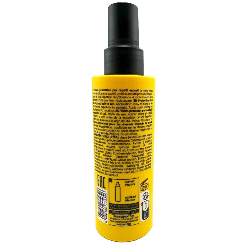 Multifunkcyjny spray bez spłukiwania, zabezpiecza włosy przed szkodliwymi czynnikami słońca, piasku i morskiej wody. Połączenie protein jedwabiu, oleju arganowego, keratyny i ekstraktu z czerwonych alg nawilża włosy i wzmacnia ich strukturę, a proteiny pszenicy nadają włosom połysk i objętość. Zawiera filtr UV.