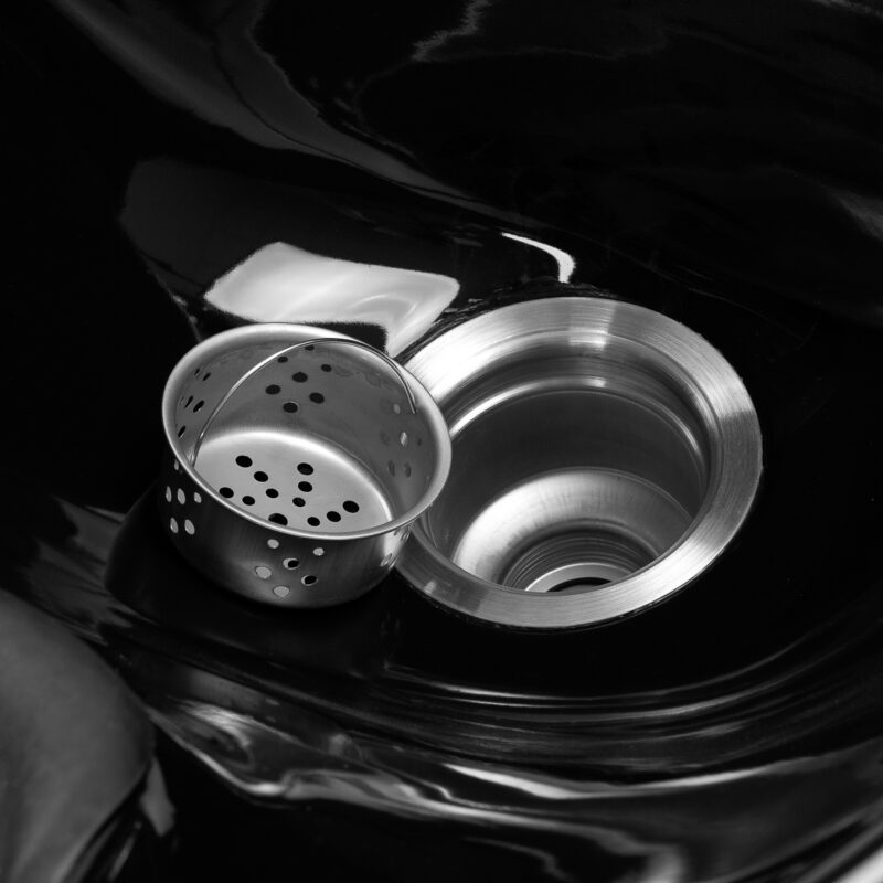 Odpowiednio dobrana głębokość czarnej, ceramicznej misy ogranicza rozchlapywanie wody oraz stosowanych preparatów, co przekłada się na komfortową i efektywną realizację różnorodnych zabiegów. Ruchoma konstrukcja umożliwia precyzyjne ustawienie kąta nachylenia misy zgodnie z indywidualnymi potrzebami użytkownika. Wysokiej jakości ceramika charakteryzuje się trwałością, odpornością na przebarwienia i zarysowania oraz łatwością utrzymania w czystości. Ergonomicznie wyprofilowany kołnierz zapewnia stabilne podparcie i wygodę podczas mycia włosów, a komfortowa nakładka z tworzywa sztucznego eliminuje nieprzyjemne odczucie chłodu ceramicznej powierzchni.