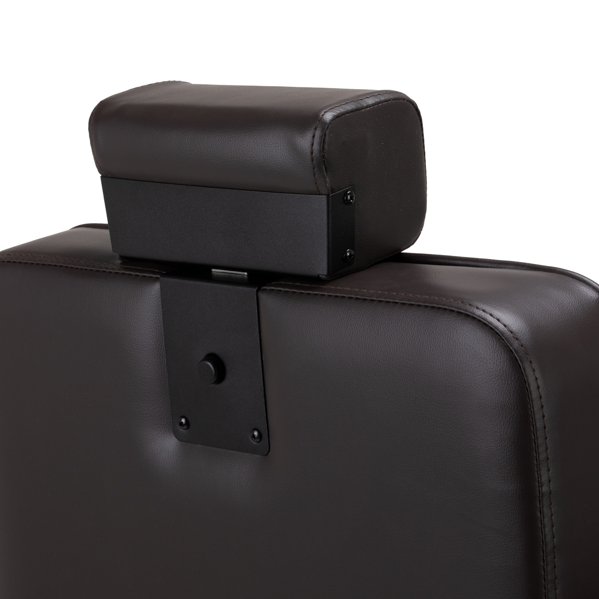 Komfortowe siedzisko gwarantuje klientowi wygodę w trakcie różnorodnych usług. Zapewniające doskonałe wsparcie pleców ergonomiczne oparcie pozwala na zajęcie dogodnej pozycji, co ma znaczenie zwłaszcza w przypadku dłuższych zabiegów. Wyposażenie fotela w mechanizm pełnego obrotu sprawia, że praca staje się bardziej efektywna i wygodna. Tapicerowane podłokietniki umieszczone na odpowiedniej wysokości umożliwiają prawidłowe ułożenie barków klienta, zapobiegając chowaniu głowy w ramionach i garbieniu się.