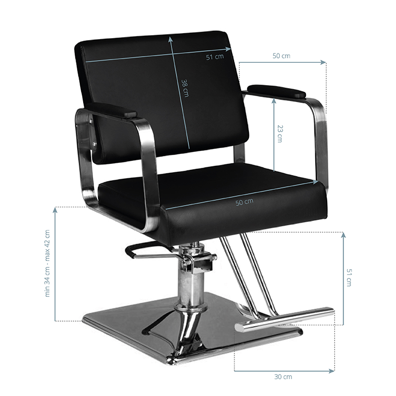 Nowoczesny fotel fryzjerski marki HAIR SYSTEM. Elagancki i bardzo wygodny. Solidna, chromowana podstawa gwarantuje utrzymanie stabilności siedziska. Obicie wykonane z wysokiej jakości czarnej ekoskóry. Fotel posiada regulację góra-dół