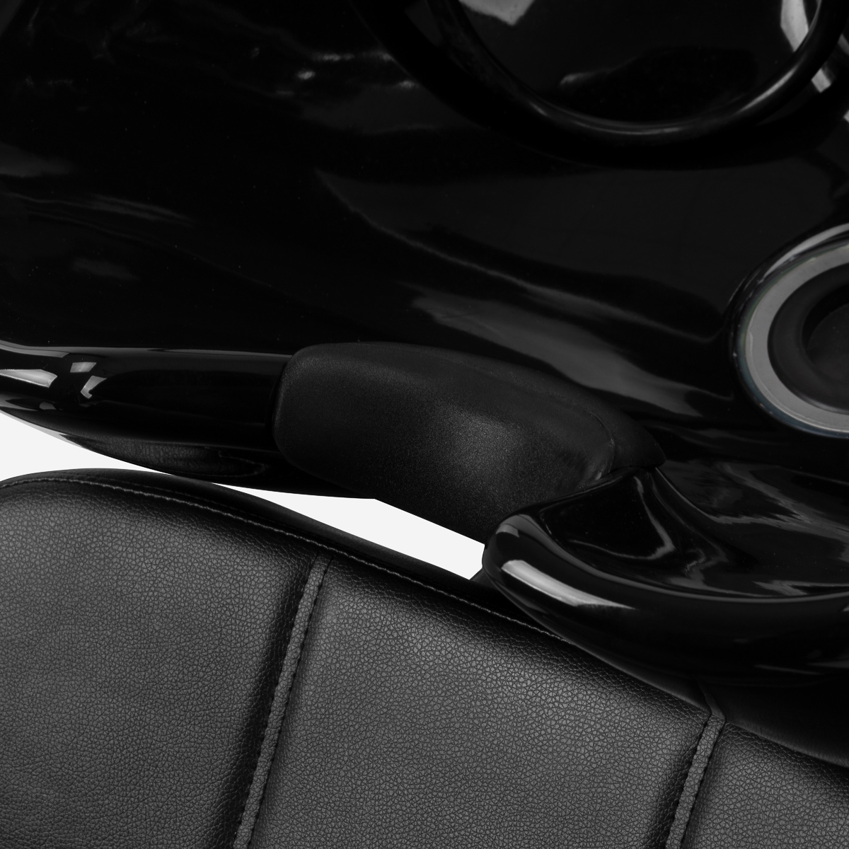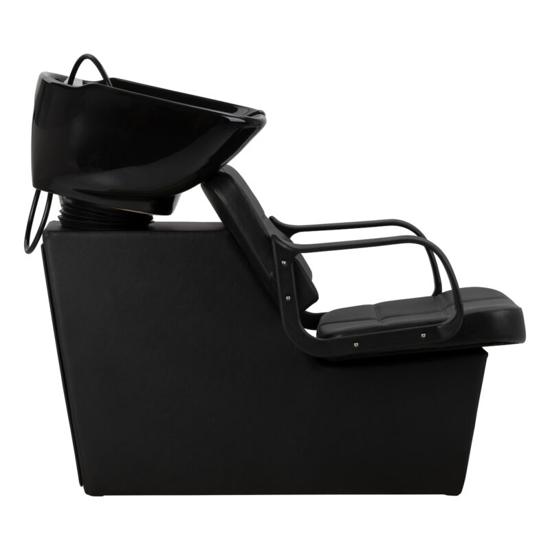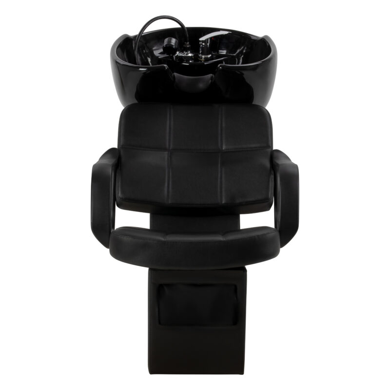 Fotel o nowoczesnej formie zapewnia wygodne warunki podczas zabiegów fryzjerskich. Stabilne oparcie sprzyja prawidłowej pozycji ciała, a szerokie siedzisko zwiększa komfort użytkowania nawet podczas dłuższych usług. Obicie ze skóry syntetycznej w odcieniach czerni cechuje się odpornością na wilgoć oraz łatwością utrzymania w czystości, co sprawia, że myjnia doskonale sprawdza się nawet przy intensywnym użytkowaniu. Kompletna armatura – bateria, słuchawka prysznicowa i dedykowane węże – zapewnia pełną gotowość stanowiska do pracy. Uniwersalny design pozwala łatwo dopasować model zarówno do nowoczesnych, jak i klasycznych wnętrz.
