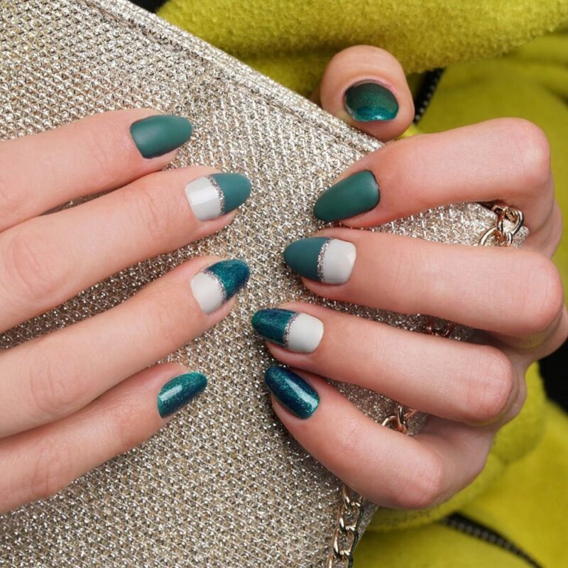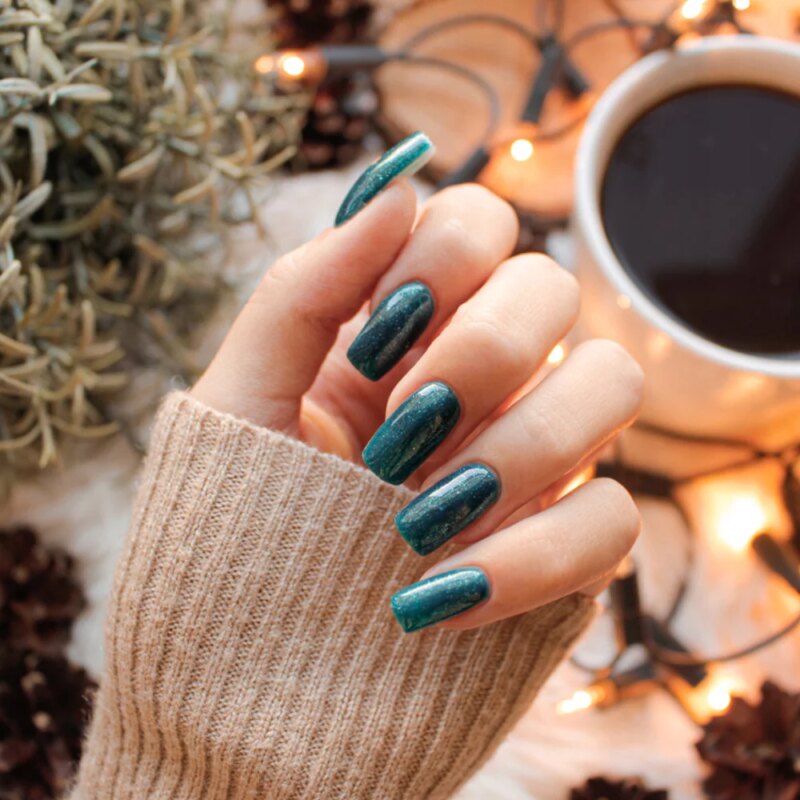 Butelkowa zieleń drzewka okraszona błyszczącymi drobinkami w odcieniu delikatnego błękitu. To kwintesencja odświętności i czaru wyjątkowych momentów spędzanych w gronie najbliższych. Falujące palce iskrzą się i hipnotyzują oczy zniewalającym efektem głębi. Oj, trudno od nich oderwać wzrok! Jeśli chcesz, by wszyscy stale patrzyli Ci na ręce – kolor #324 to właściwy wybór ;D