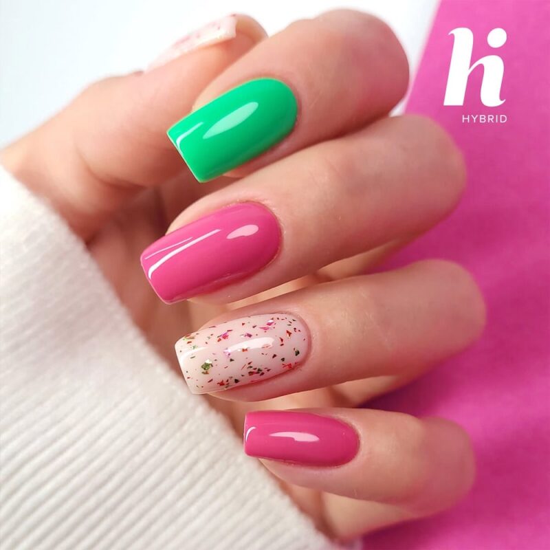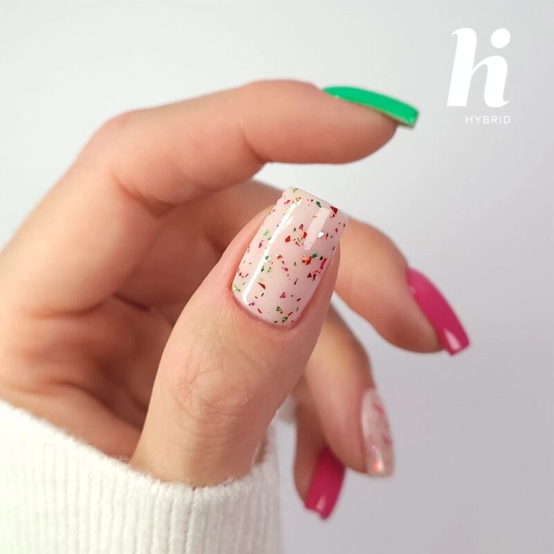 Intensywnie czerwone, mieniące się płatki zmiksowane z różowymi oraz zielonymi drobinkami o nieregularnych kształtach tworzą połączenie doskonałe! Eksperymentuj z intensywnymi kolorami lub delikatną bazą i ciesz się pięknym mani z oryginalnym zdobieniem.