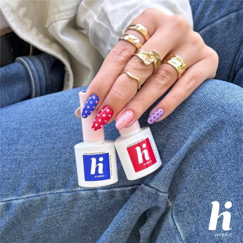 Bazę i top hi hybrid należy utwardzać za pomocą 10-watowej lampy hi hybrid przez 45 sekund. Natomiast większość odcieni lakierów hi zalecamy utwardzać w trybie 60 sekund. Są jednak kolory, które ze względu na swoją większą pigmentację potrzebują więcej czasu. Dlatego, jeżeli macie w swojej kolekcji lakiery o numerach: 114, 201, 228, 320, 321, 322, 406, 415, 416 pamiętajcie, aby utwardzać je najlepiej przez 120 sekund.