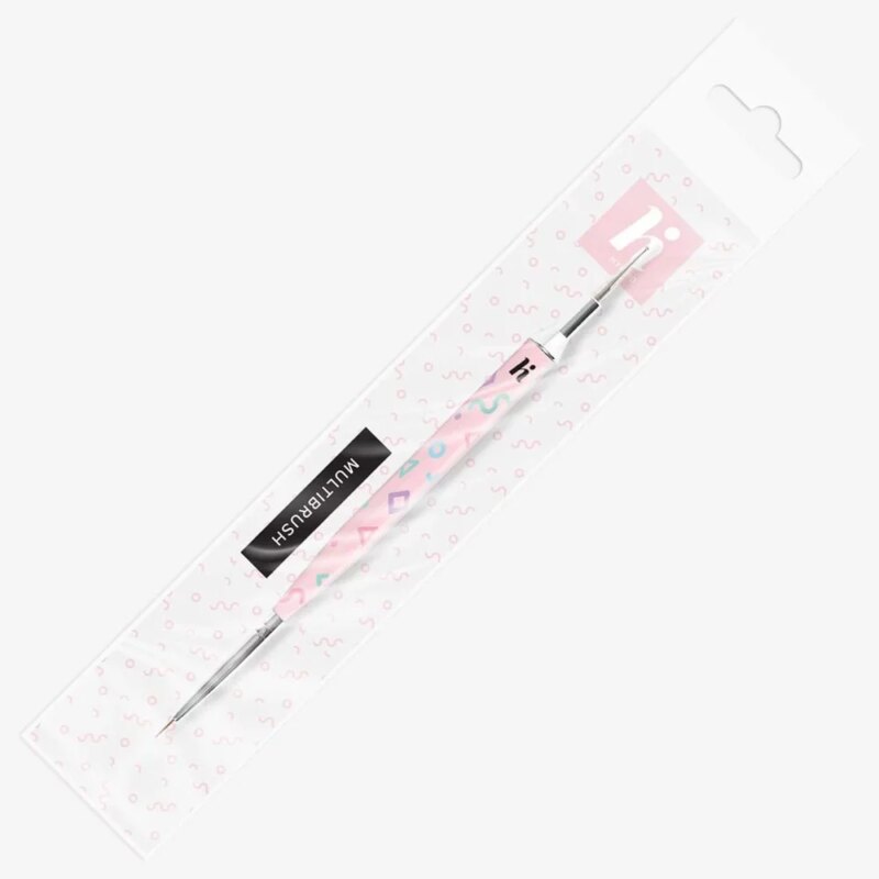 Hi multibrush do manicure hybrydowego posiada dwie różne końcówki. Jedna strona zakończona jest cieniutkim pędzelkiem, a druga sondą z kulką umożliwiającą usuwanie lakieru hybrydowego ze skórek.