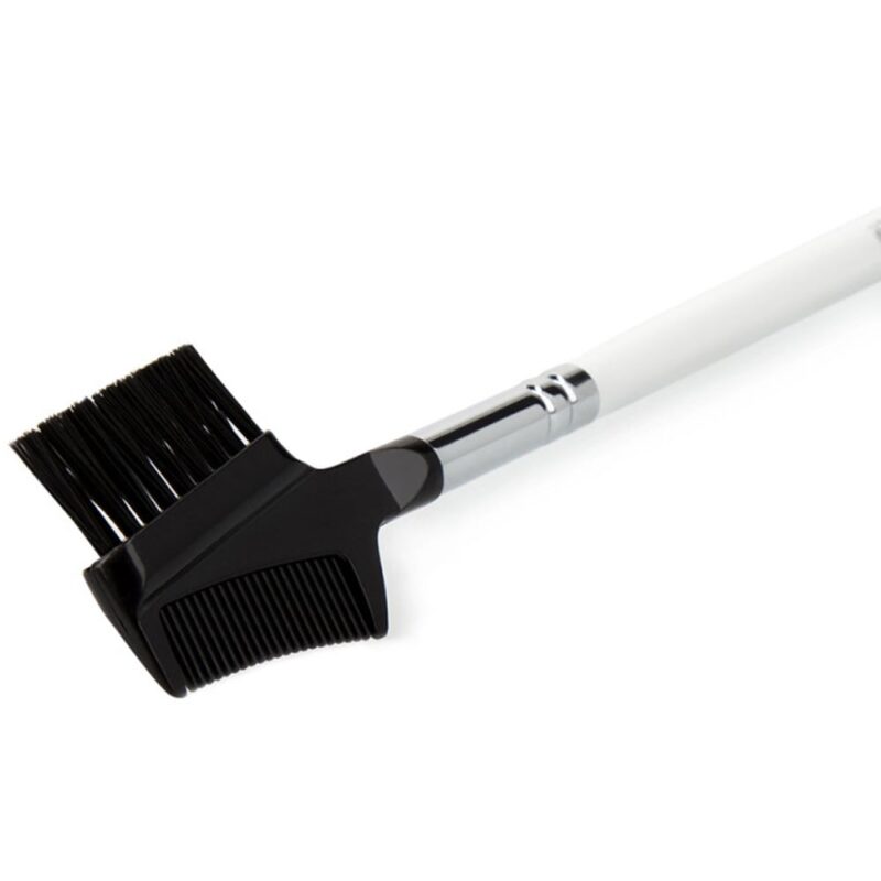 Gęsta, zbita szczoteczka ma idealną twardość włosia i pozwala wyczesać włoski i nadać im idealny kształt. Grzebyczek pomoże rozdzielić włoski brwi i rzęs i pozbyć się z nich nadmiaru kosmetyków.