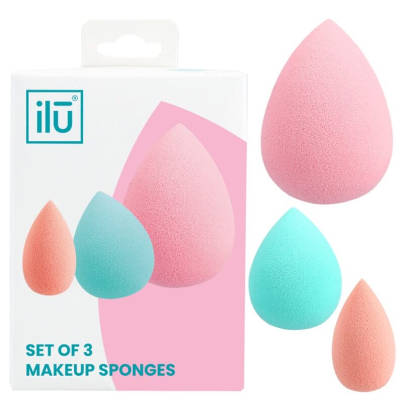 ILU MakeUp Zestaw gąbek do makijażu mini + średnia + duża, łezka
