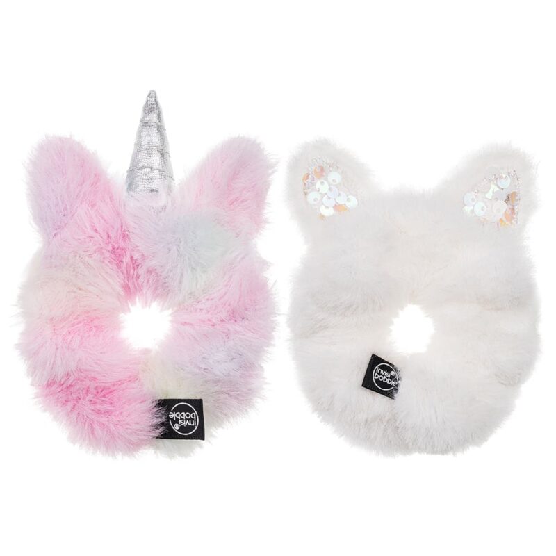 KIDS SPRUNCHIE Bunnycorn marki invisibobble to duet puszystych gumek do włosów dla dzieci. Dzięki wewnętrznej spirali, włosy są chronione, a fryzura jest maksymalnie utrwalona. Gumki są wyjątkowo delikatne i nie pozostawiają śladów na włosach.