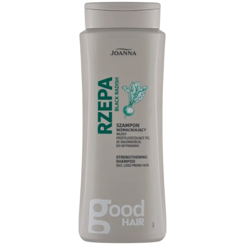 Szampon wzmacniający do włosów przetłuszczających się ze skłonnością do wypadania Rzepa to nowoczesny kosmetyk którego receptura oparta jest na znanych i cenionych za efektywność ekstraktach roślinnych. Szampon zawiera specjalnie skomponowane składniki: wyciąg z czarnej rzepy, procyjanidy z pestek winogron oraz kompleks trzech ziół: pokrzywy, łopianu i chmielu. Składniki te efektywnie wzmacniają i tonizują, dzięki czemu włosy odzyskują puszystość i naturalny połysk. Dzięki unikalnej recepturze szamponu, wypadanie włosów i przetłuszczanie się skóry głowy zostaje zmniejszone, jednocześnie włosy zostają wypielęgnowane aż po same końce. Specjalna kompozycja zapachowa neutralizuje charakterystyczny zapach czarnej rzepy i poprawia komfort stosowania.