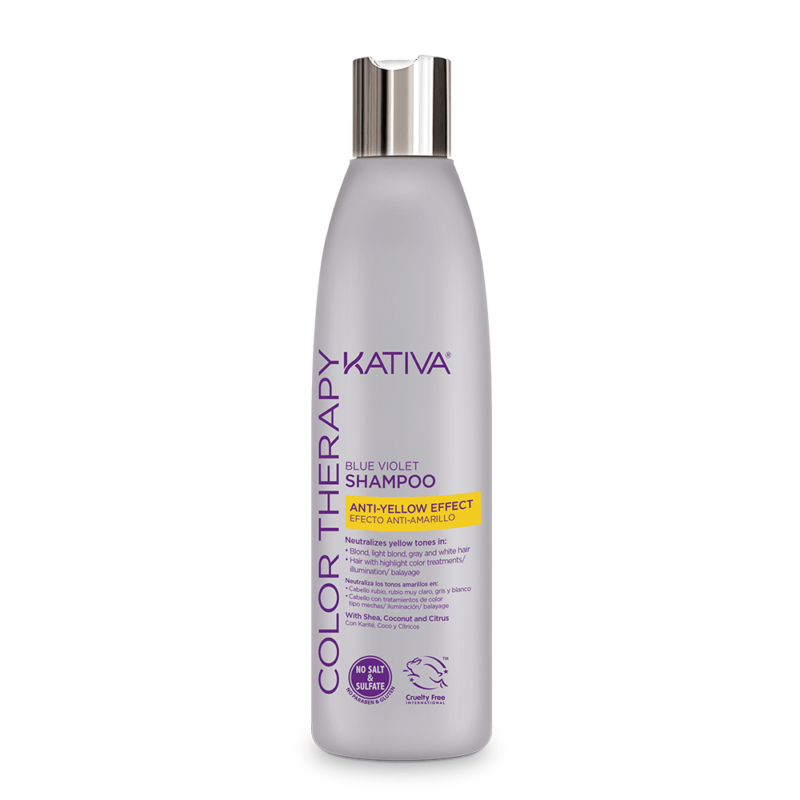 Kativa Color Therapy zawiera fioletowe i niebieskie pigmenty, które pomagają neutralizować niepożądane odcienie żółtawe i pomarańczowe. Jego formuła z naturalnymi składnikami, masłem Shea, olejem kokosowym i owocami cytrusowymi, zapewnia włosom miękkość i połysk.