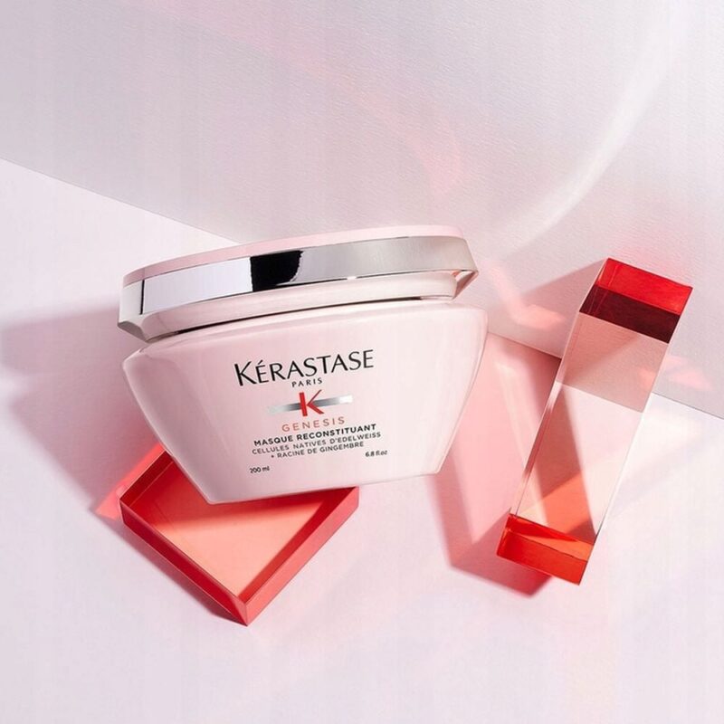 Maska Kérastase Genesis nadaje fryzurze lekkość bez obciążenia, dodatkowo zabezpieczając przed łamliwością. Odbudowuje strukturę włókna włosów w obszarach uległych uszkodzeniu i zapewnia odporność. Formuła wzbogacona komórkami macierzystymi szarotki alpejskiej i wyciągu z korzenia imbiru natychmiastowo zmiękcza i wygładza, dzięki temu włosy zyskują większy połysk i jednolitą strukturę. Włosy stają się mocniejsze, bardziej miękkie i błyszczące.