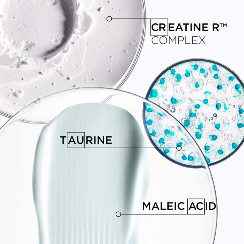 - KWAS MALEINOWY: niewielkie cząsteczki, które wnikają we włókno włosa, dla wsparcia wzmacniającego działania i domykania łusek włosów.